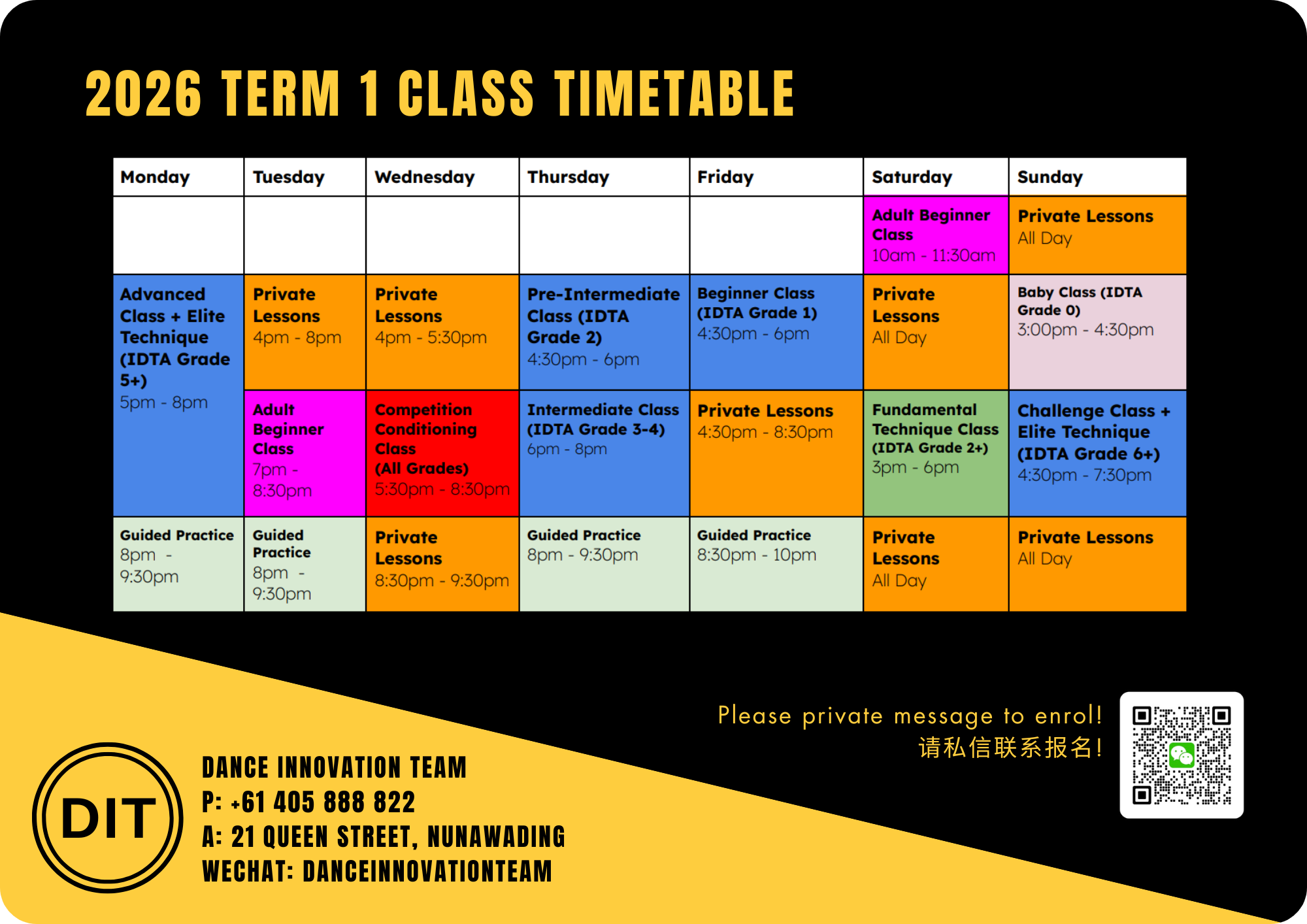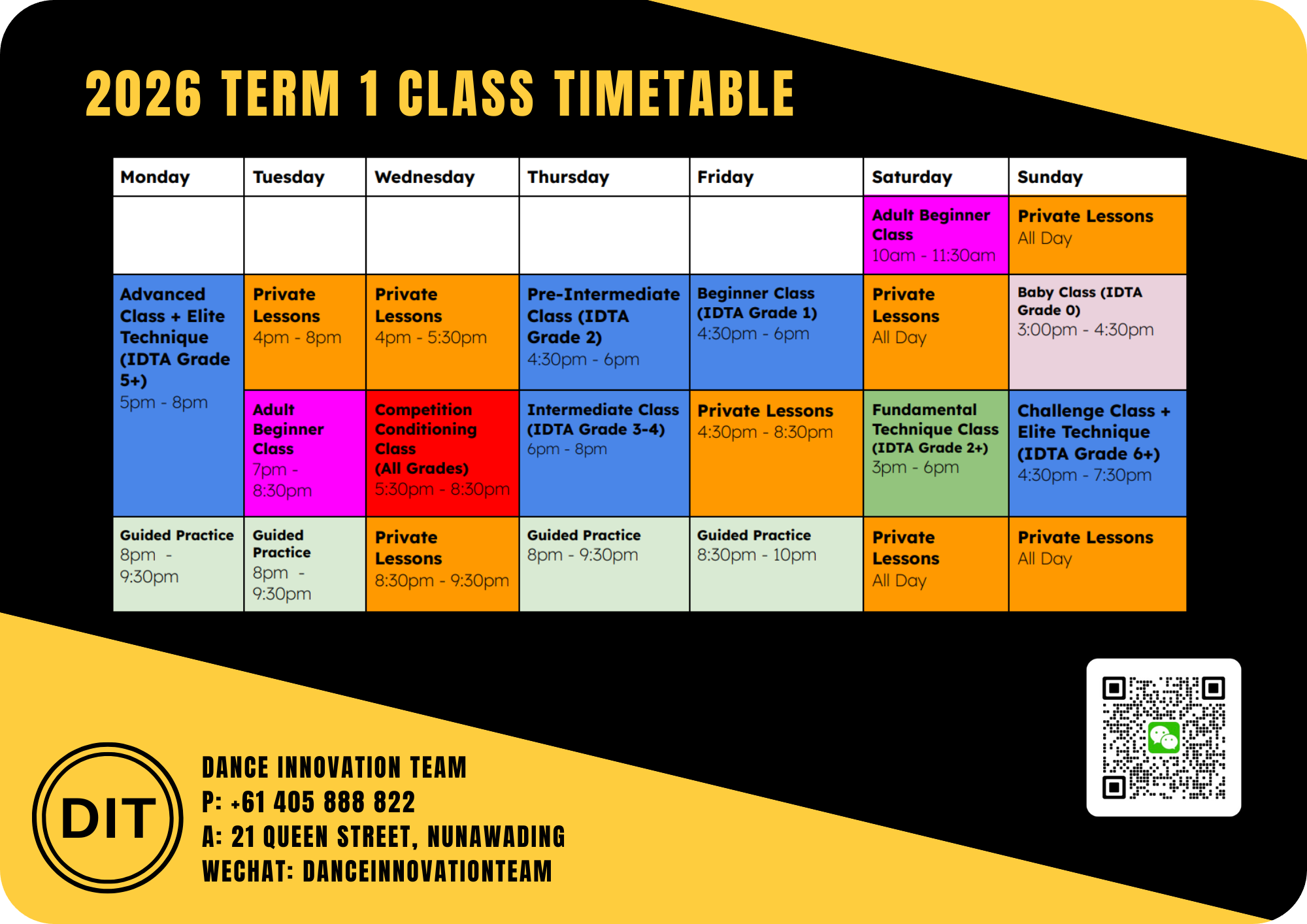 Class Timetable & Training Schedule