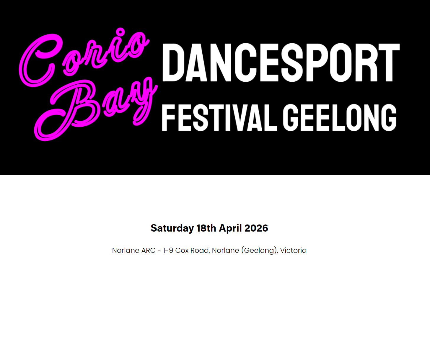 Corio Bay Dancesport Festival – Geelong is a professionally run DanceSport competition bringing together dancers from across Victoria and interstate to showcase excellence in Ballroom, Latin, and New Vogue.
